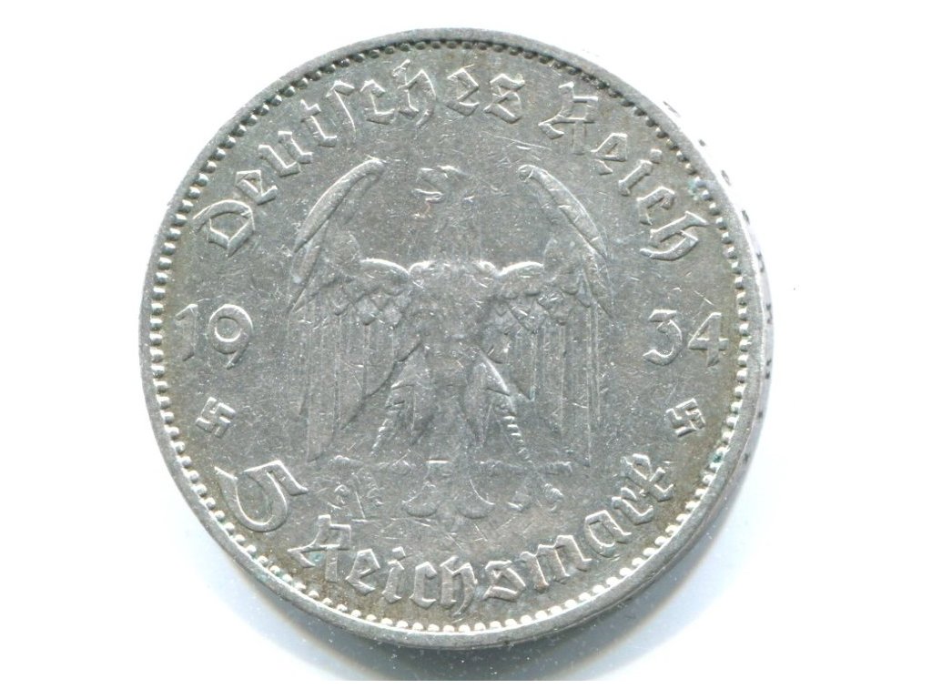 NĚMECKO. 5 Mark 1934/A. Věž. Ag.