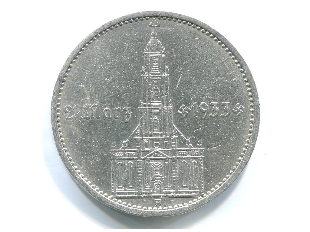 NĚMECKO. 5 Mark 1934/A. Věž + datum.