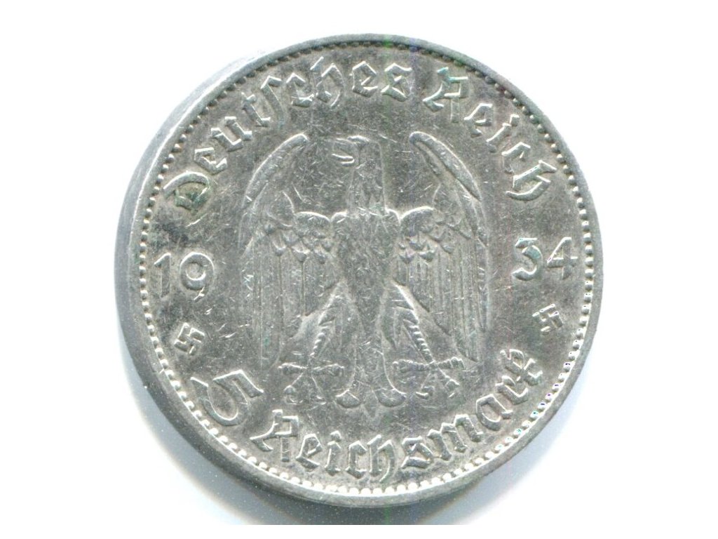 NĚMECKO. 5 Mark 1934/E. Věž. Ag.