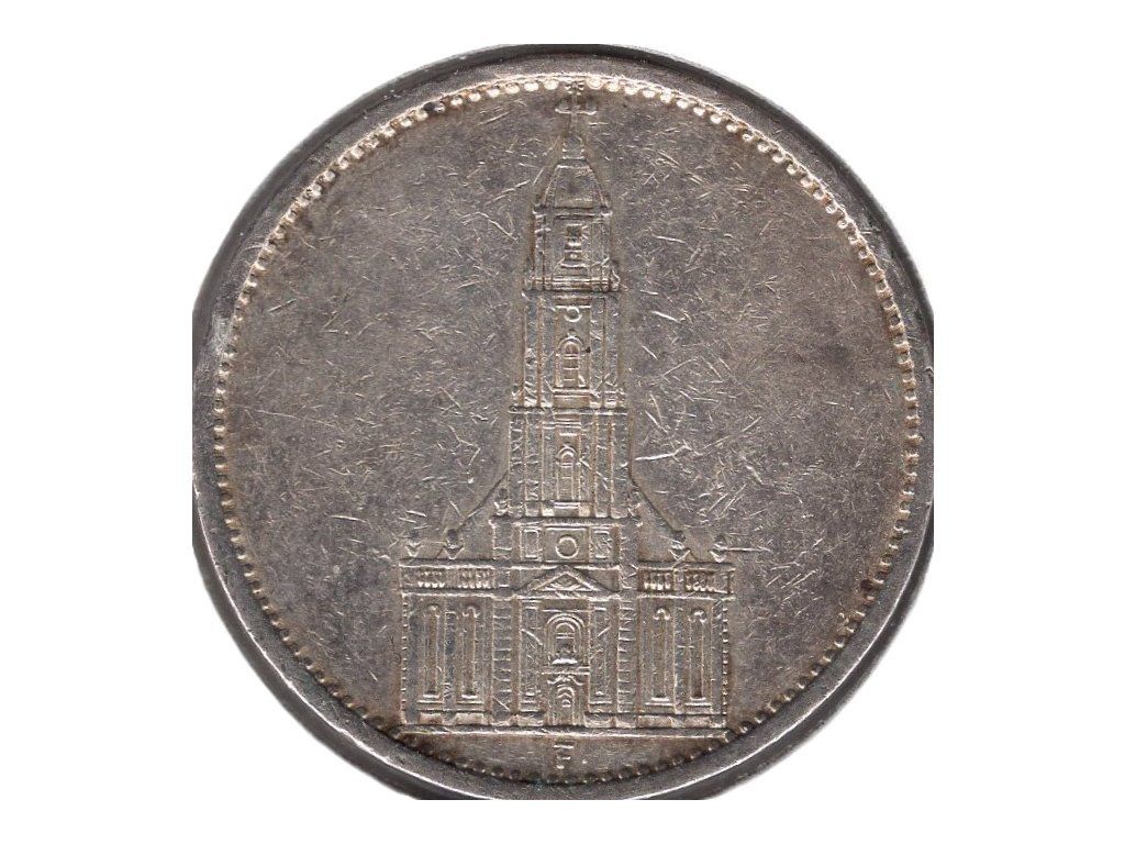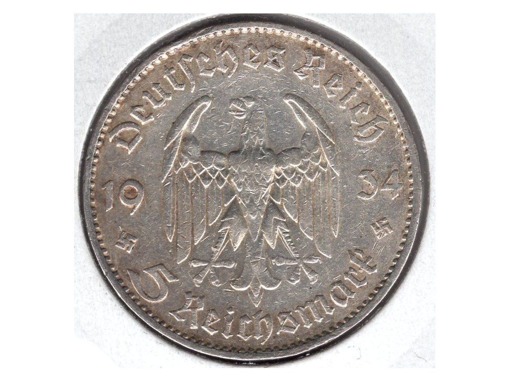 NĚMECKO. 5 Mark 1934/F. Věž. Ag.
