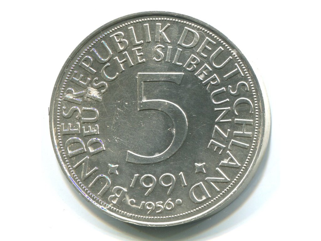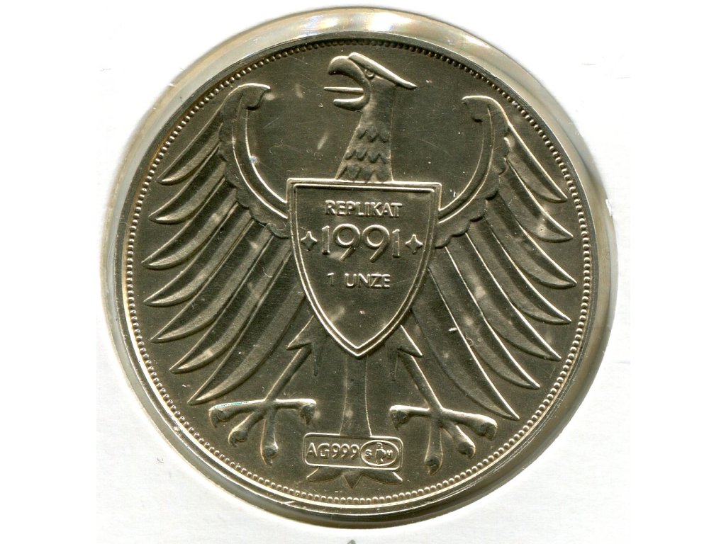 NĚMECKO. 5 Mark 1945-1991. Deutsche Silberunze. Replicat. Ag. 1 oz.