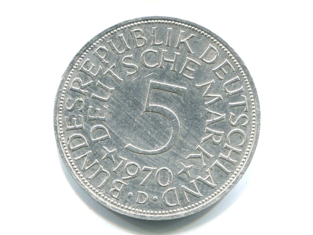 NĚMECKO. 5 Mark 1970/F. Ag.