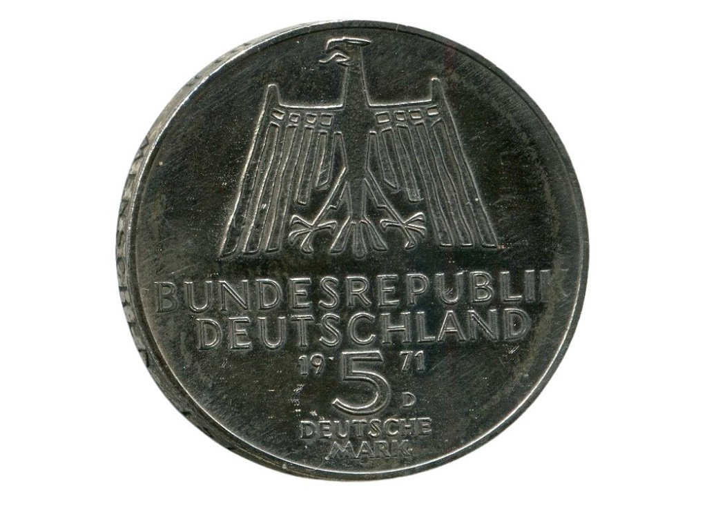 NĚMECKO. 5 Mark 1971/D. Albrecht Dürer. Ag.