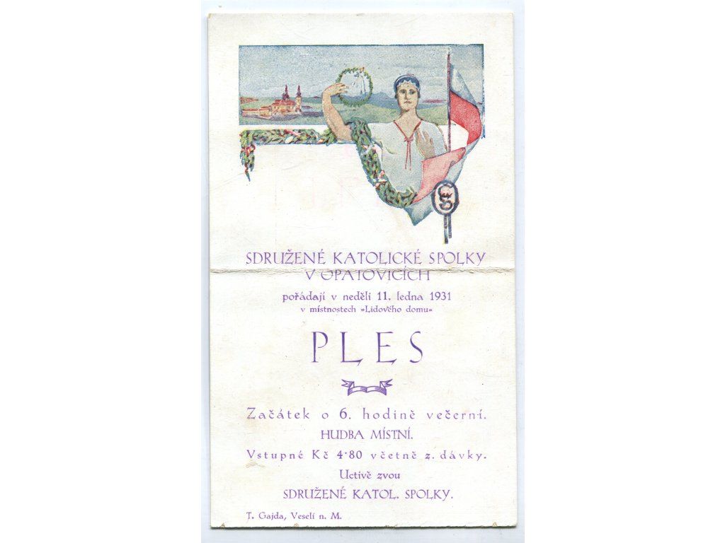 OPATOVICE. Sdružené katolické spolky. Pozvánka na ples. 1931.