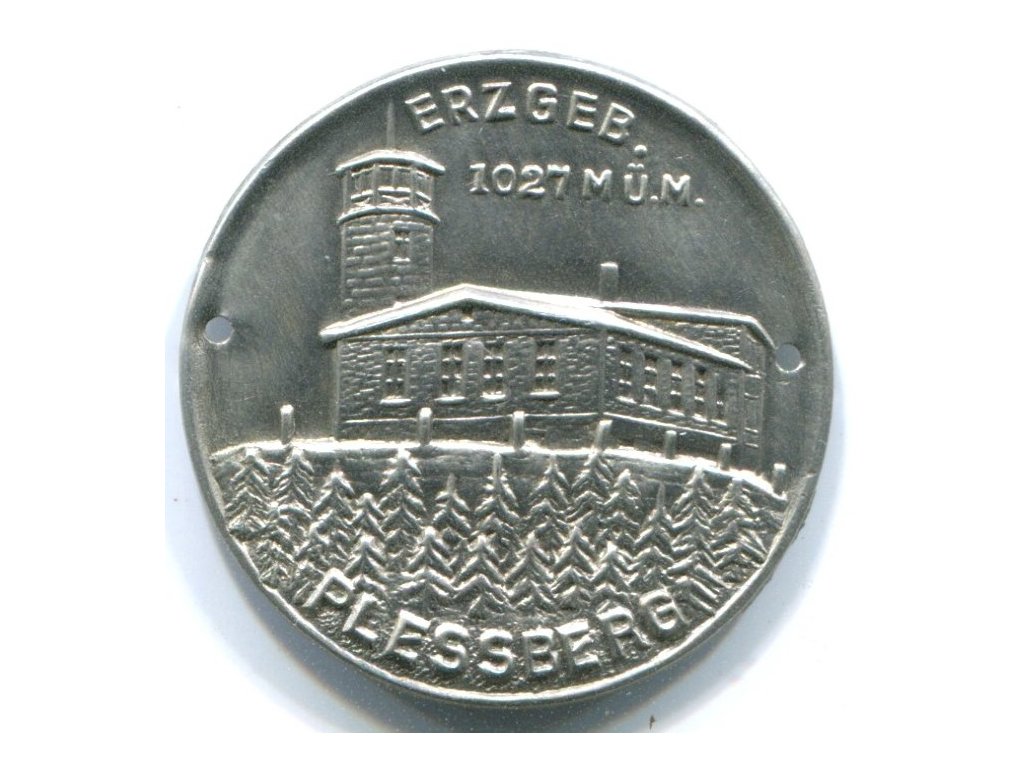 PLEŠIVEC. Plessberg. Erzgebirge. Štítek na hůl.