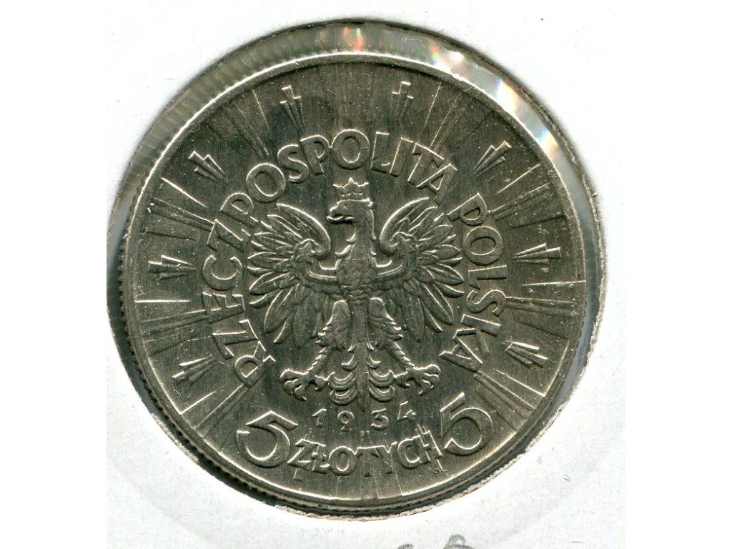 POLSKO. 5 złotych 1934. Piłsudski, Ag.