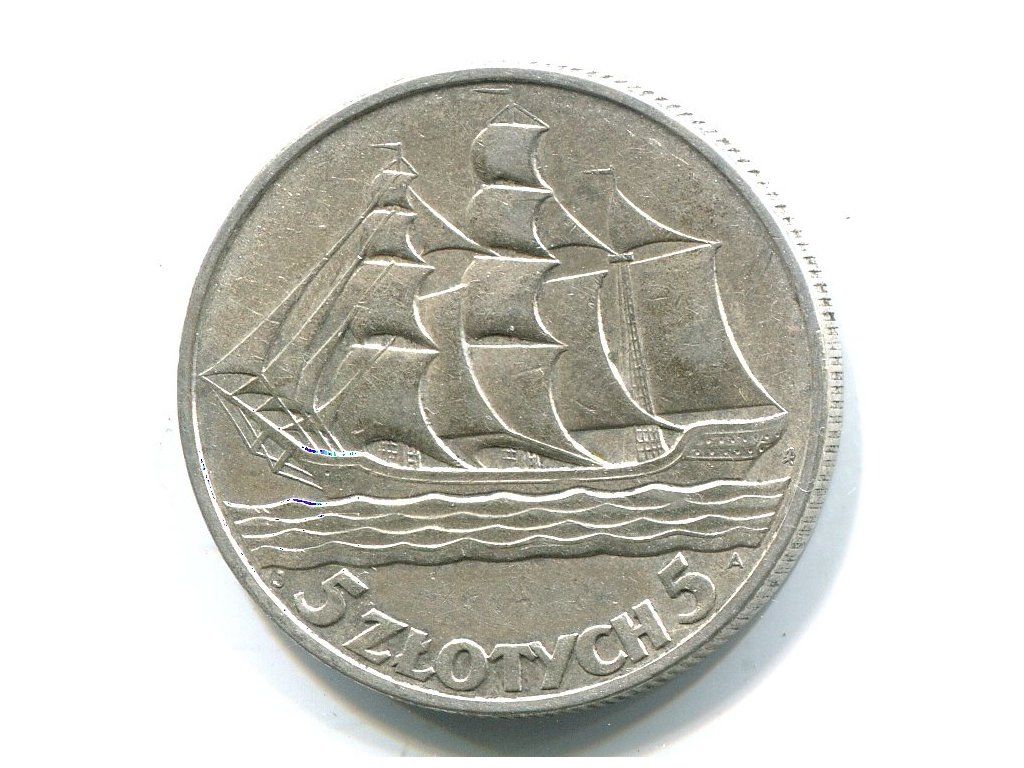 POLSKO. 5 złotych 1936. Plachetnice. Ag.