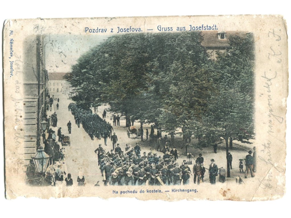 POZDRAV Z JOSEFOVA. Na pochodu do kostela. 1903.