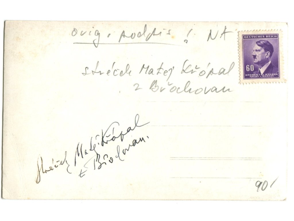 POZDRAV Z NÁCHODA. Originální podpis - stréček Matěj Křópal z Břochovan.