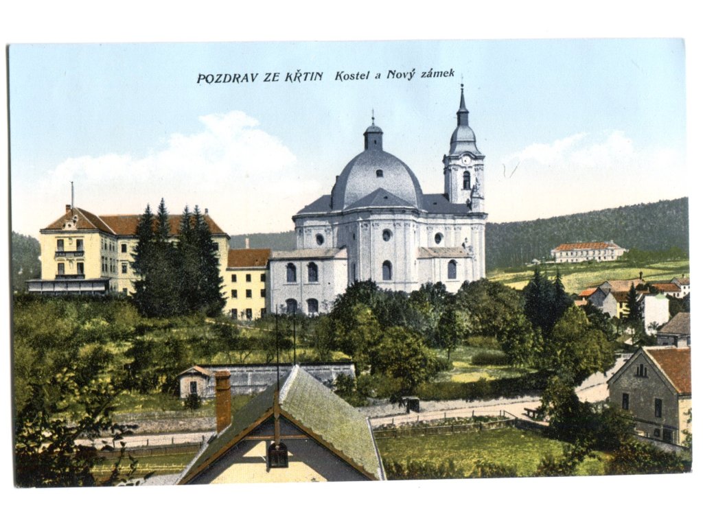 POZDRAV ZE KŘTIN. Kostel a Nový zámek.