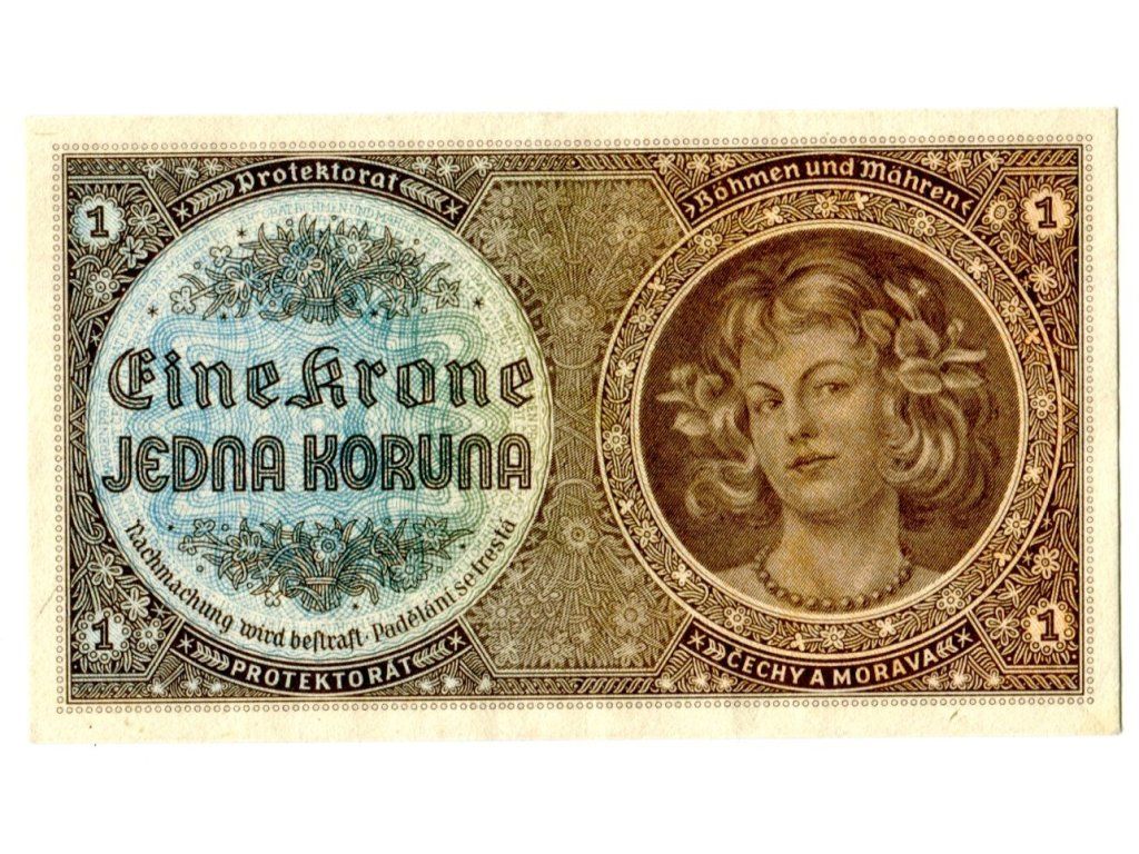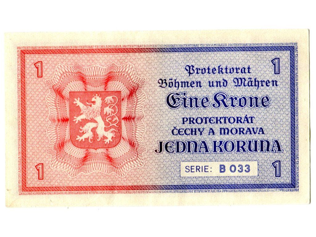 Protektorát Čechy a Morava. 1 koruna 1940. Série B 033. Hej. 30a.