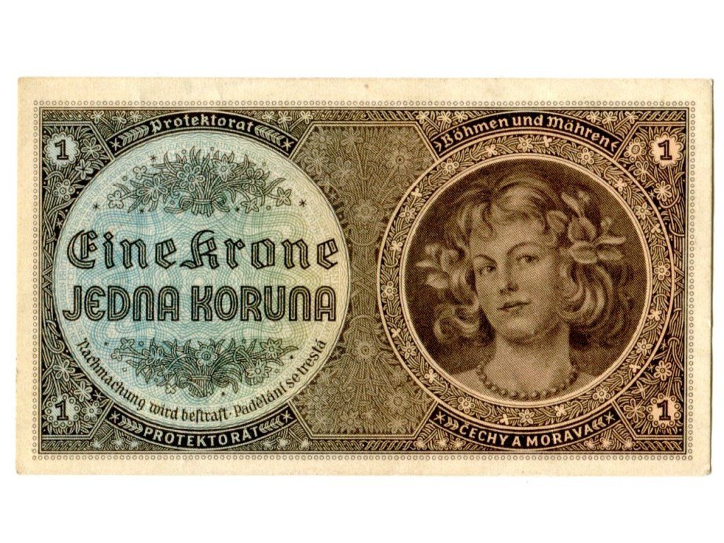 Protektorát Čechy a Morava. 1 koruna 1940. Série D 003. Hej. 30a.