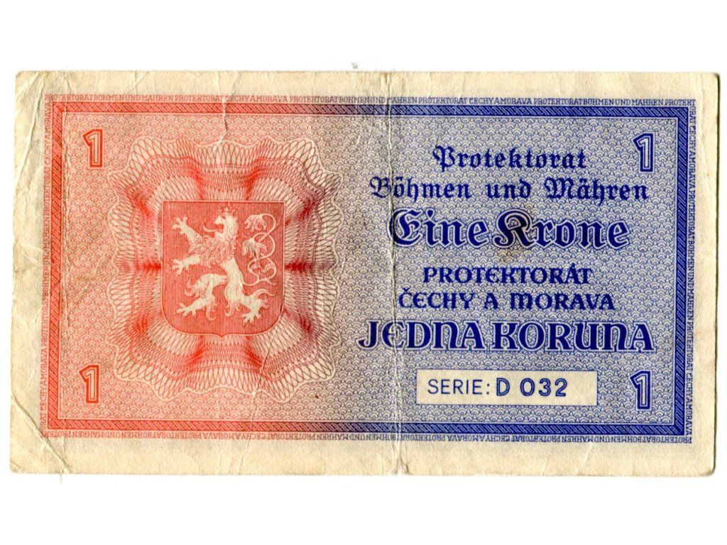 Protektorát Čechy a Morava. 1 koruna 1940. Série D 032. Hej. 30a.