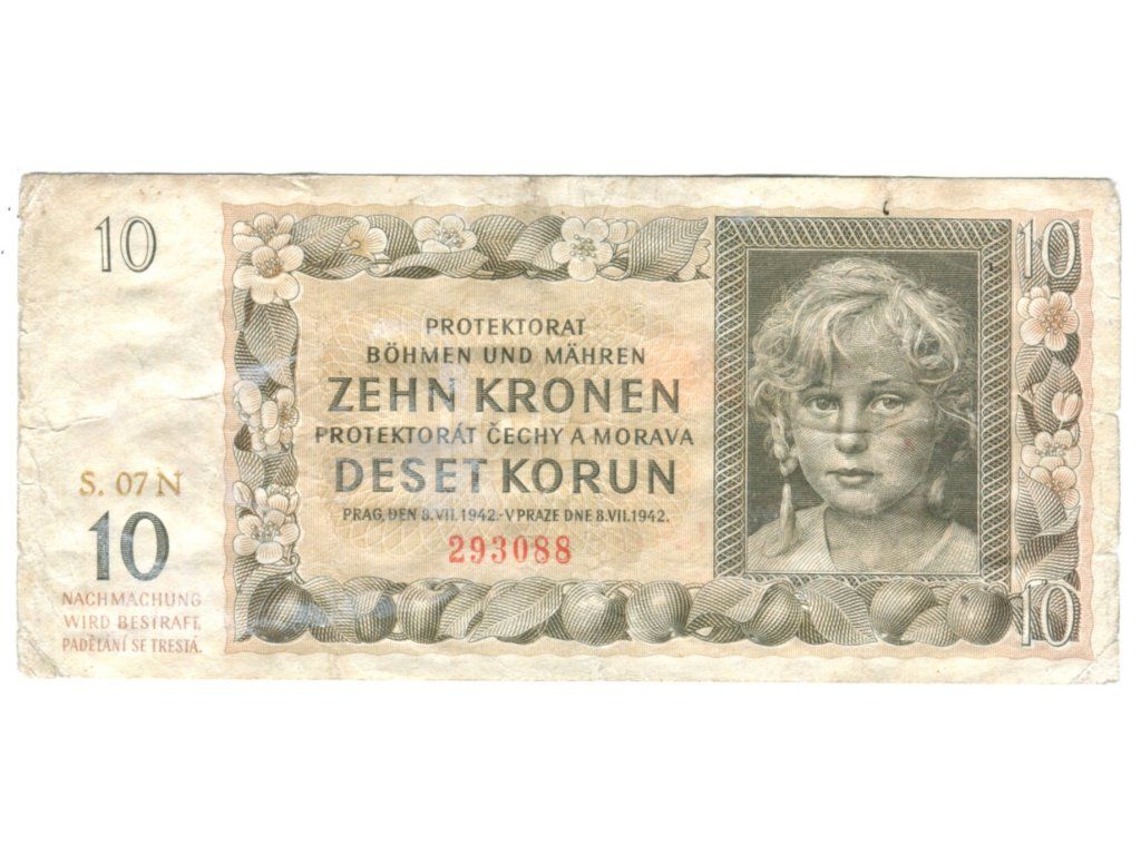 Protektorát Čechy a Morava. 10 korun 1942. Série A 07. Hej. 37a.