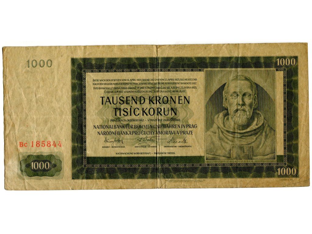 Protektorát Čechy a Morava. 1000 korun 1942. Série Bc. Hej. 39b.