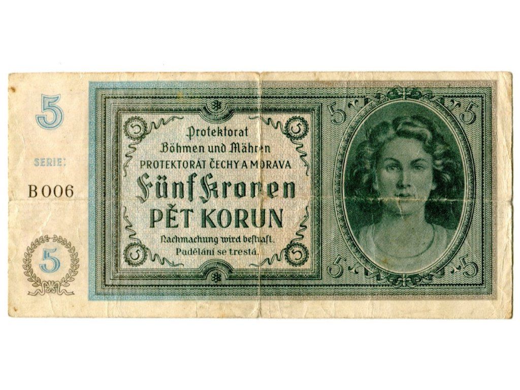 Protektorát Čechy a Morava. 5 korun (1940). Série B 006. Hej. 31a.
