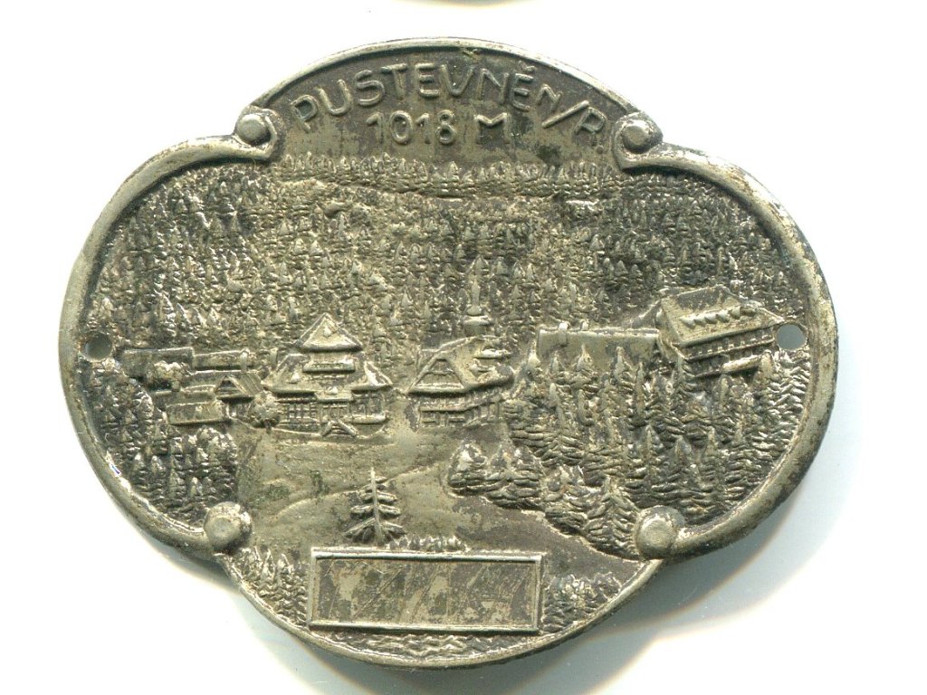 PUSTEVNĚ n. R. Štítek na hůl.