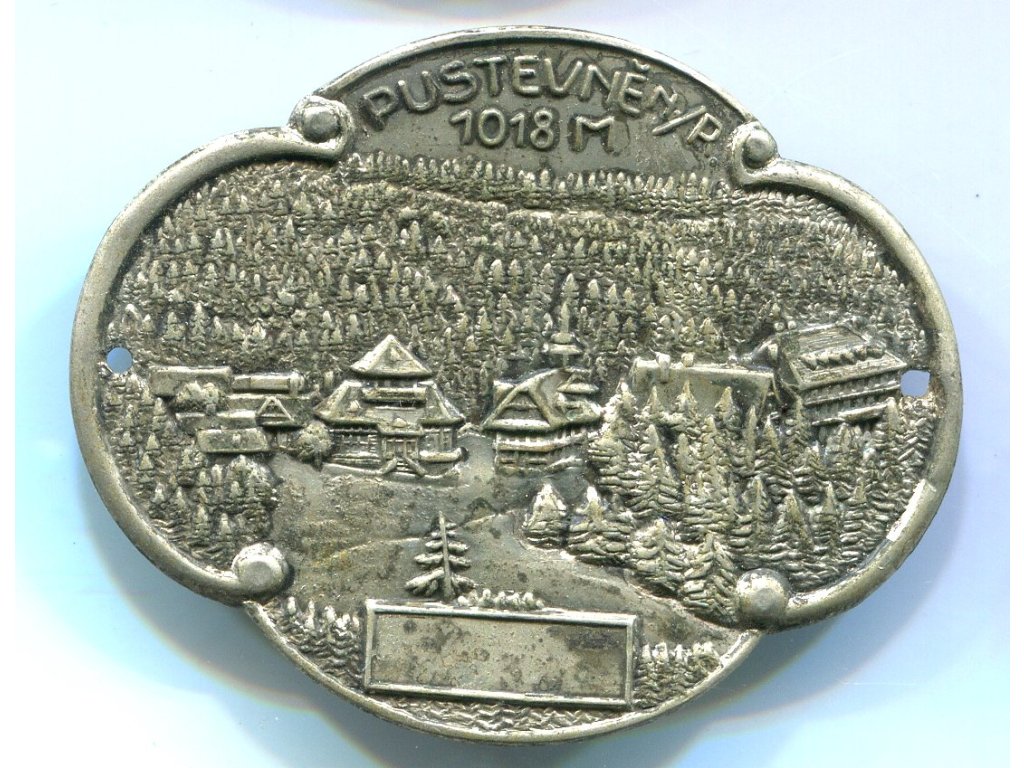 PUSTEVNĚ n. R. Štítek na hůl.