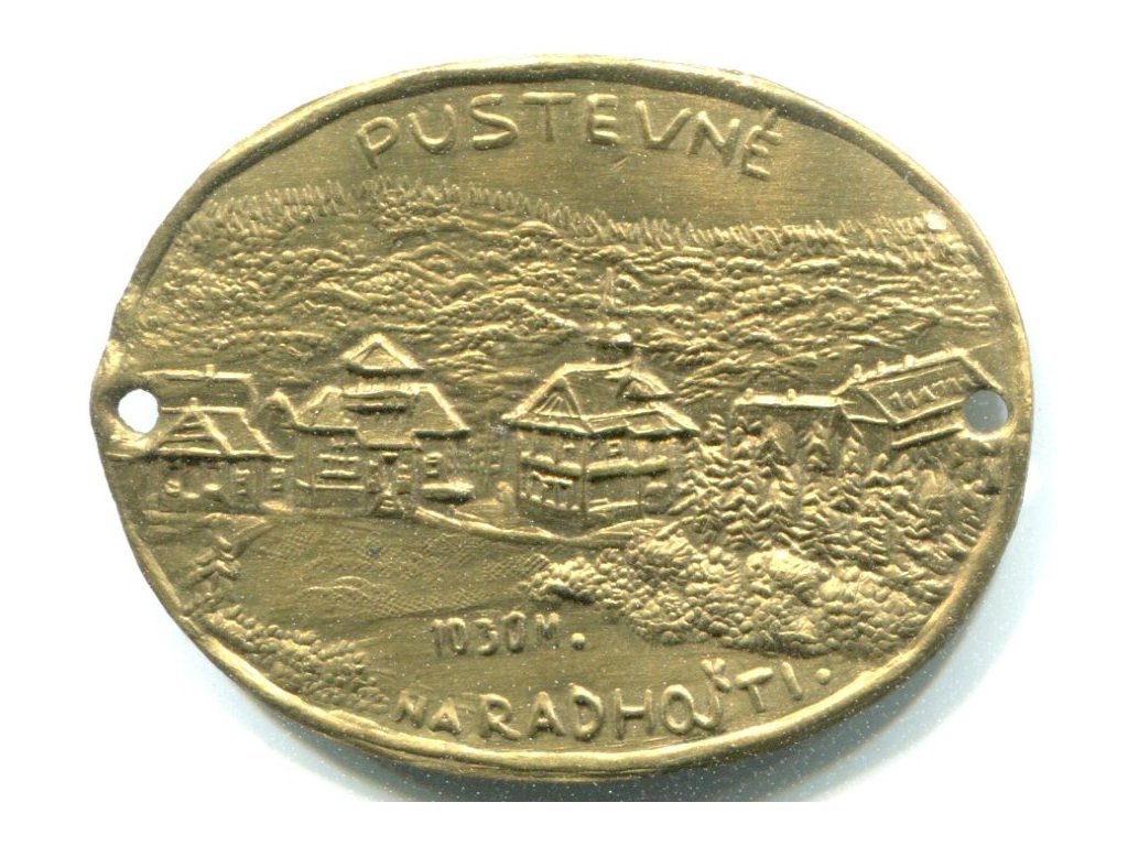 PUSTEVNĚ na Radhošti. Štítek na hůl.