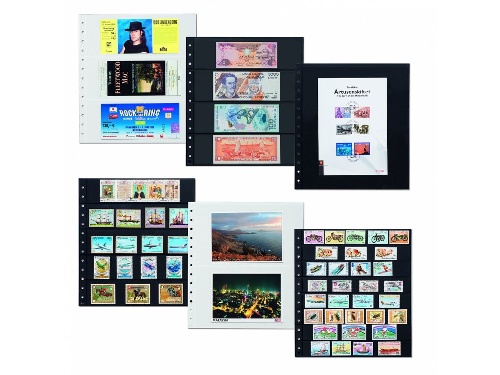 Matches the LIGHTHOUSE 13-hole album system. Here you can find an assortment of various plastic stock pages, allowing you to store miniature sheets, mint sheet shares, FDCs, booklets, booklet pages, blocks, combinations, blocks of four and oversized stamps. Made from extra strong black (S), white (W) or clear (C) film*. The crystal clear pockets cover the stamps completely. Overall size: 270 x 297 mm To place these sheets we recommend the Ringbinder EXCELLENT with a capacity up to 40 sheets.Doplňkové parametry