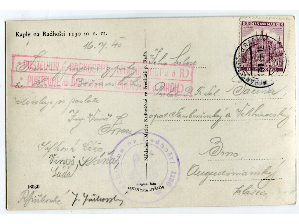 RADHOŠŤ. Kaple na Radhošti. 1940.