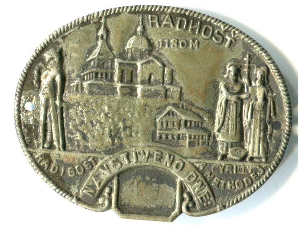 RADHOŠT. Radigost. Cyril a Methoděj. Štítek na hůl.