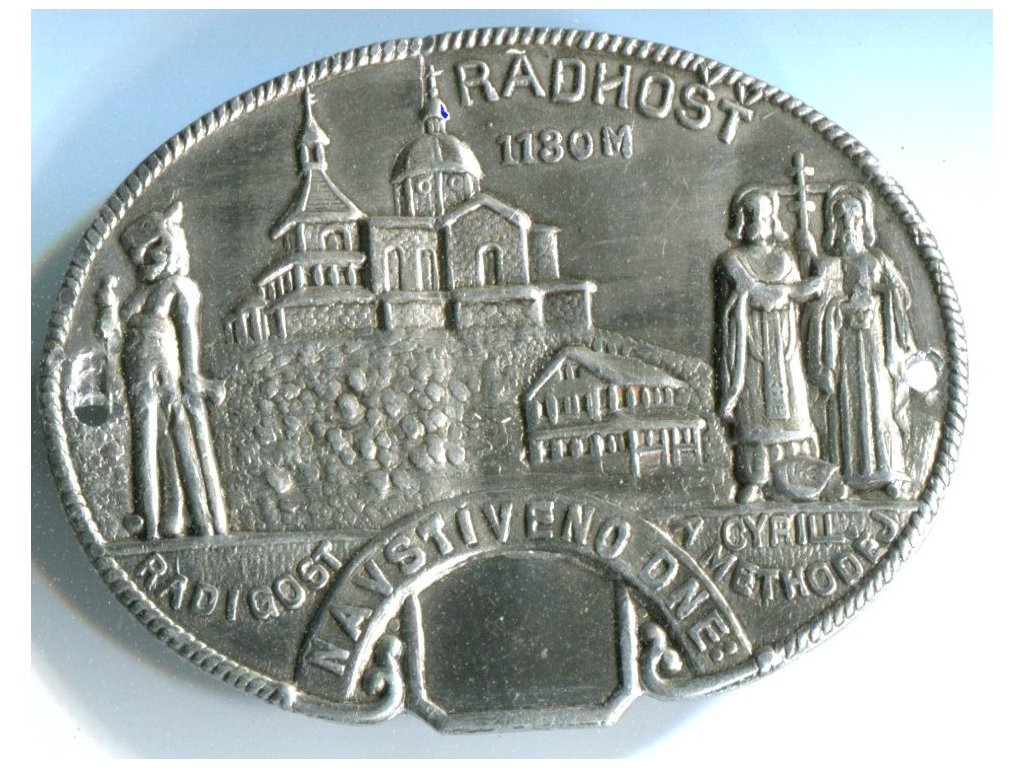 RADHOŠT. Radigost. Cyril a Methoděj. Štítek na hůl.