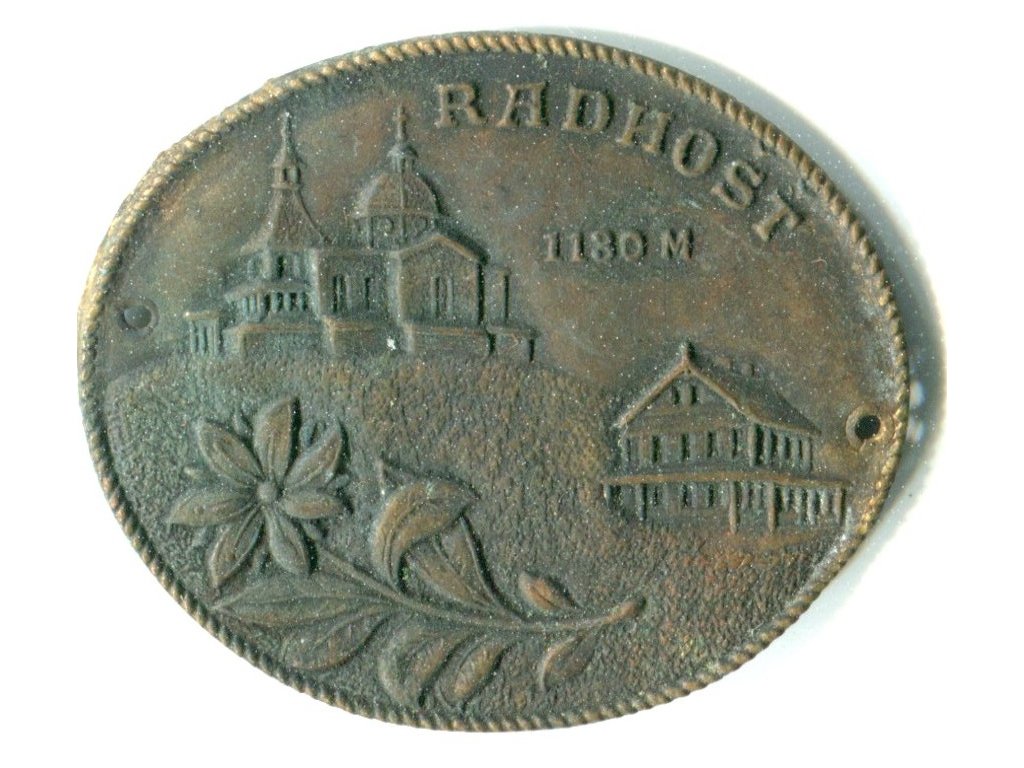 RADHOŠŤ. Štítek na hůl.