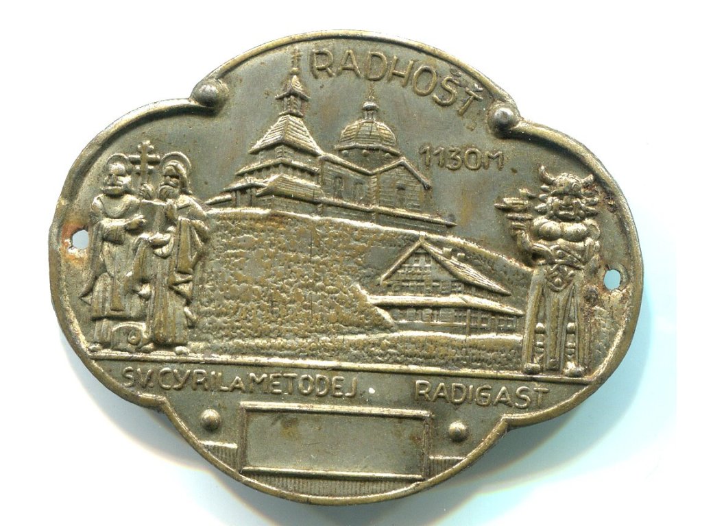RADHOŠŤ. Sv. Cyril a Metoděj. Radigast. Štítek na hůl.