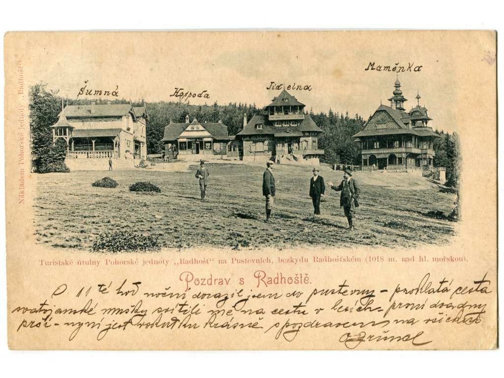 RADHOŠŤ. Turistické útulny Pohorské jednoty Radhošť na Pustevních, bezkydu Radhošťském. 1905.