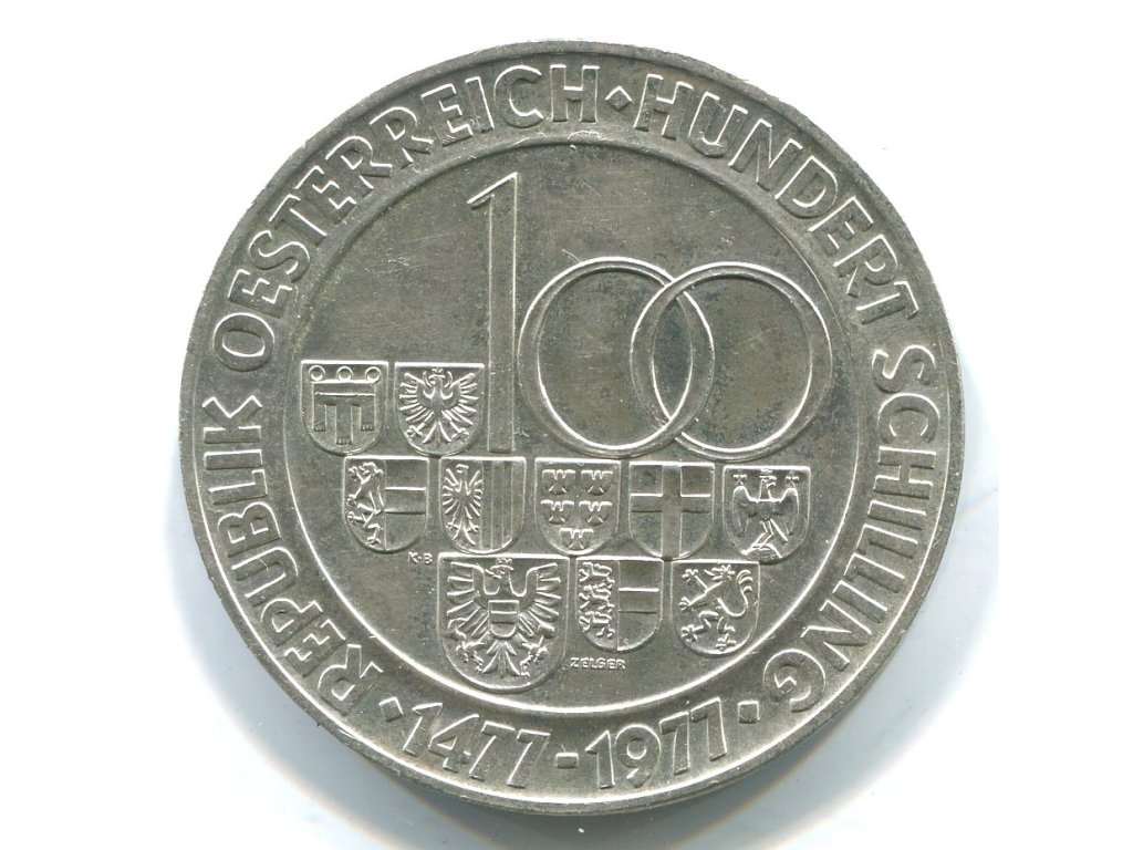 RAKOUSKO. 100 Schilling 1977. Mincovna Hall. Ag.