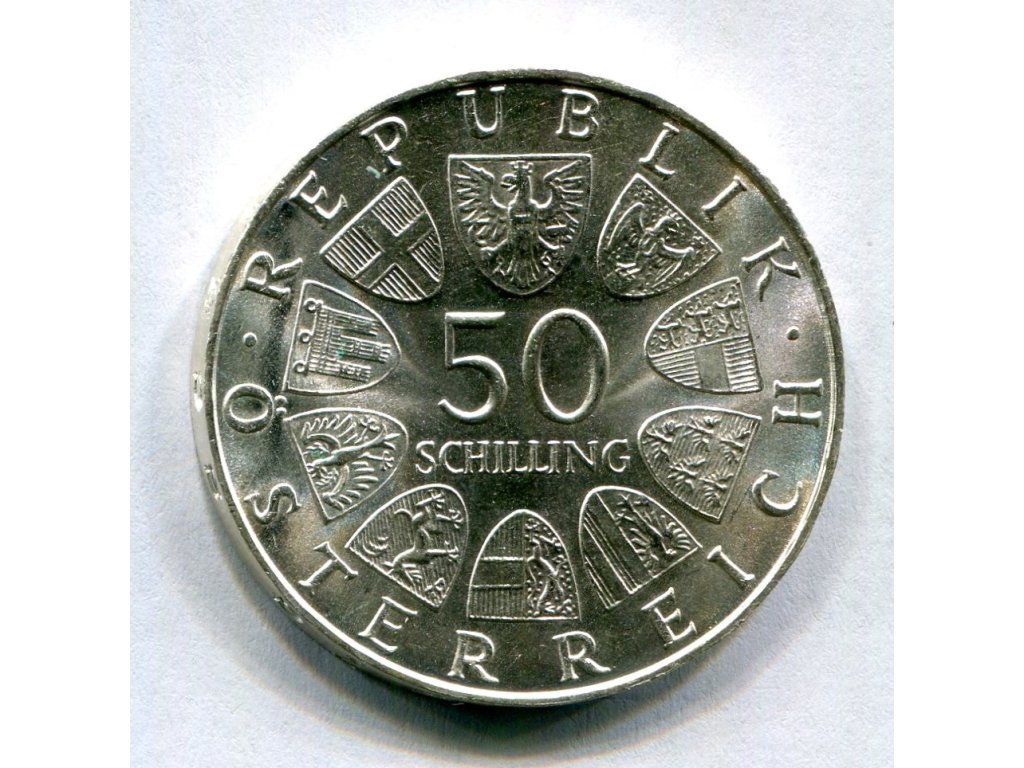 RAKOUSKO. 50 Schilling 1972. 350 Jahre Universität Salzburg. Ag.