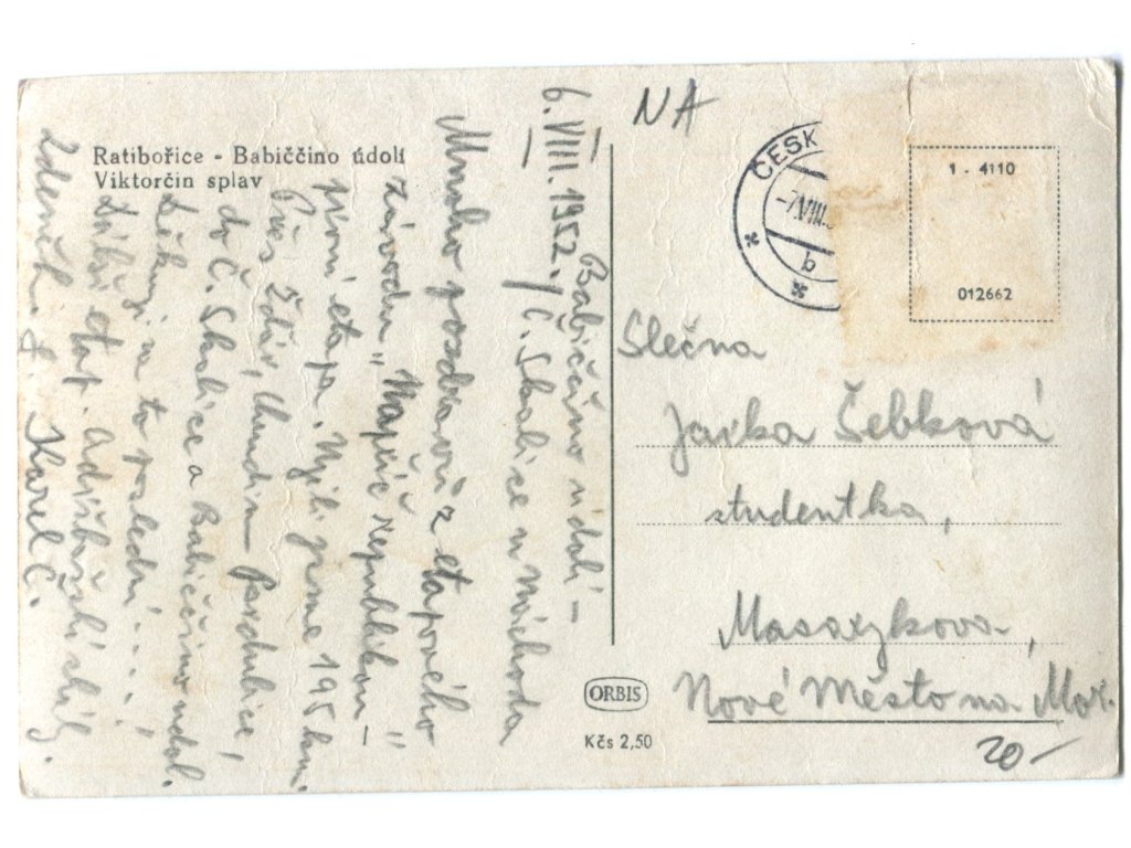 RATIBOŘICE. BABIČČINO ÚDOLÍ. Viktorčin splav. 1952.