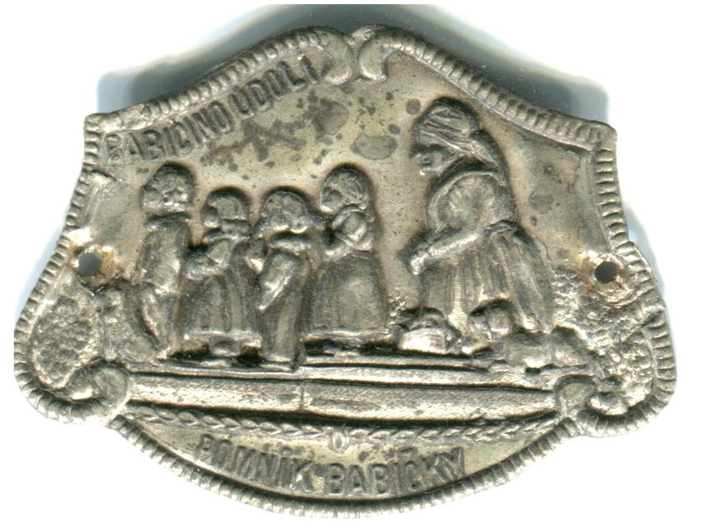 RATIBOŘICE. Babičino údolí. Pomník babičky. Štítek na hůl.