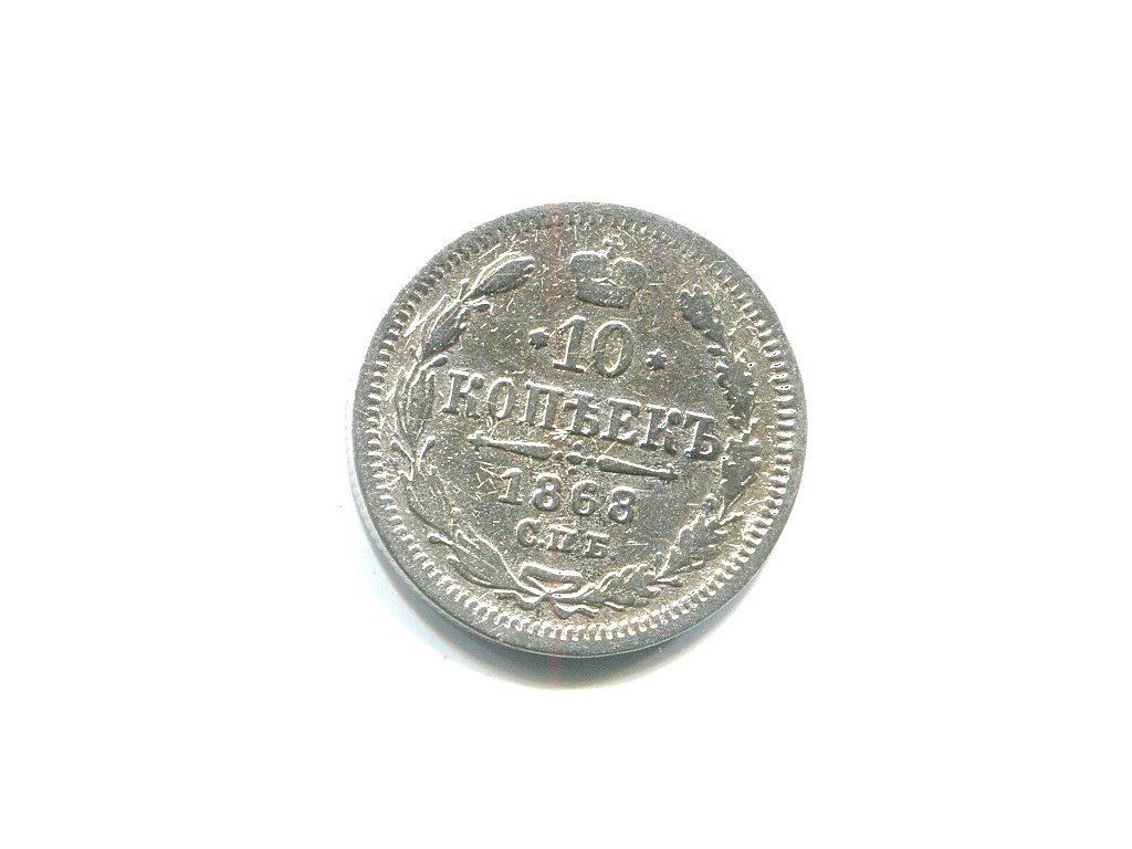 RUSKO. 10 kopějek 1868/СПБ. Ag.