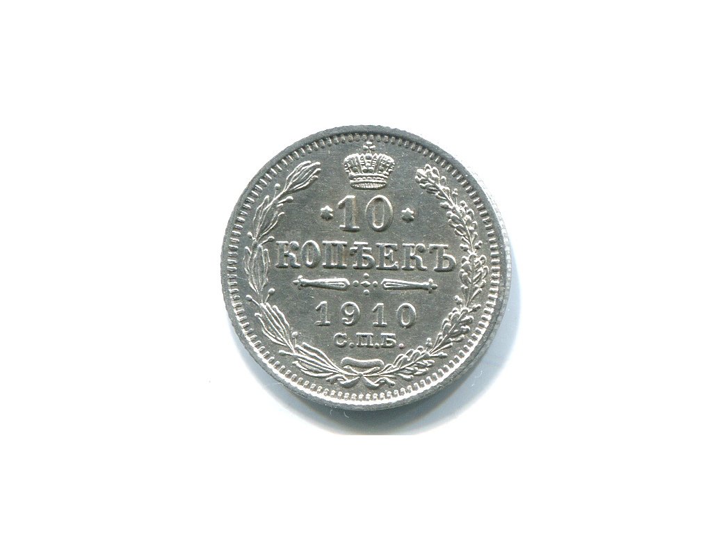 RUSKO. 10 kopějek 1910/СПБ-ЭБ. Ag.