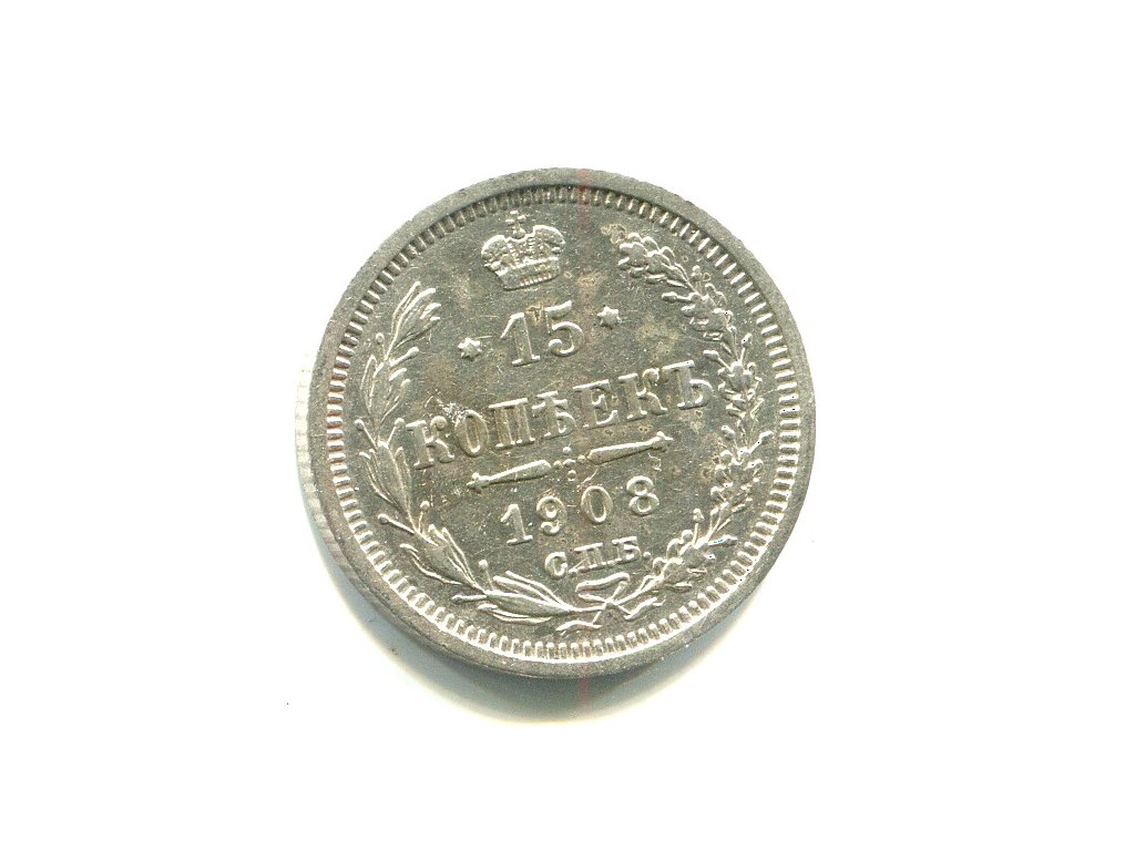 RUSKO. 15 kopějek 1908/СПБ-3Б. Ag.