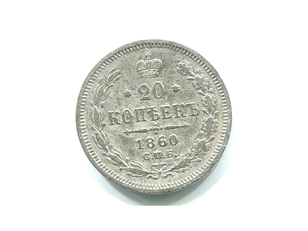 RUSKO. 20 kopějek 1860/СПБ-ФБ. Ag.