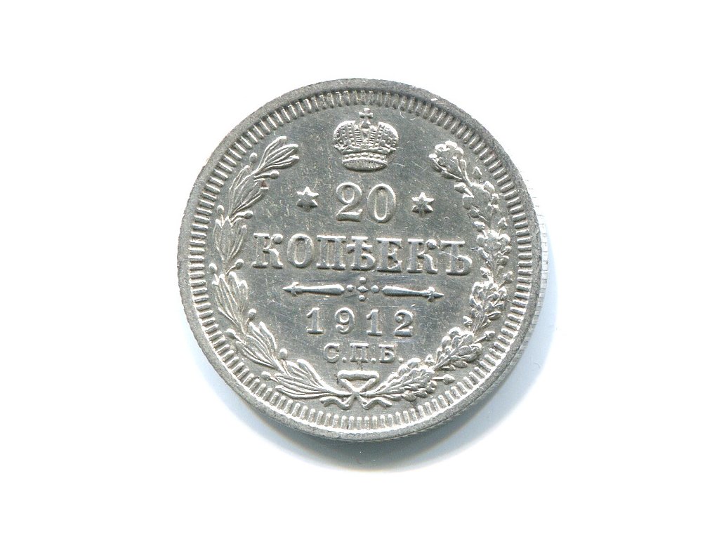 RUSKO. 20 kopějek 1912/СПБ-3Б. Ag.