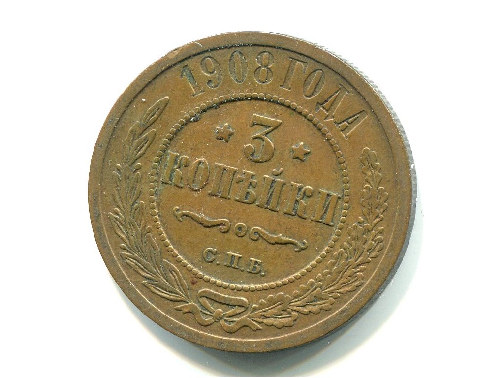 RUSKO. 3 kopějky 1908/CПБ