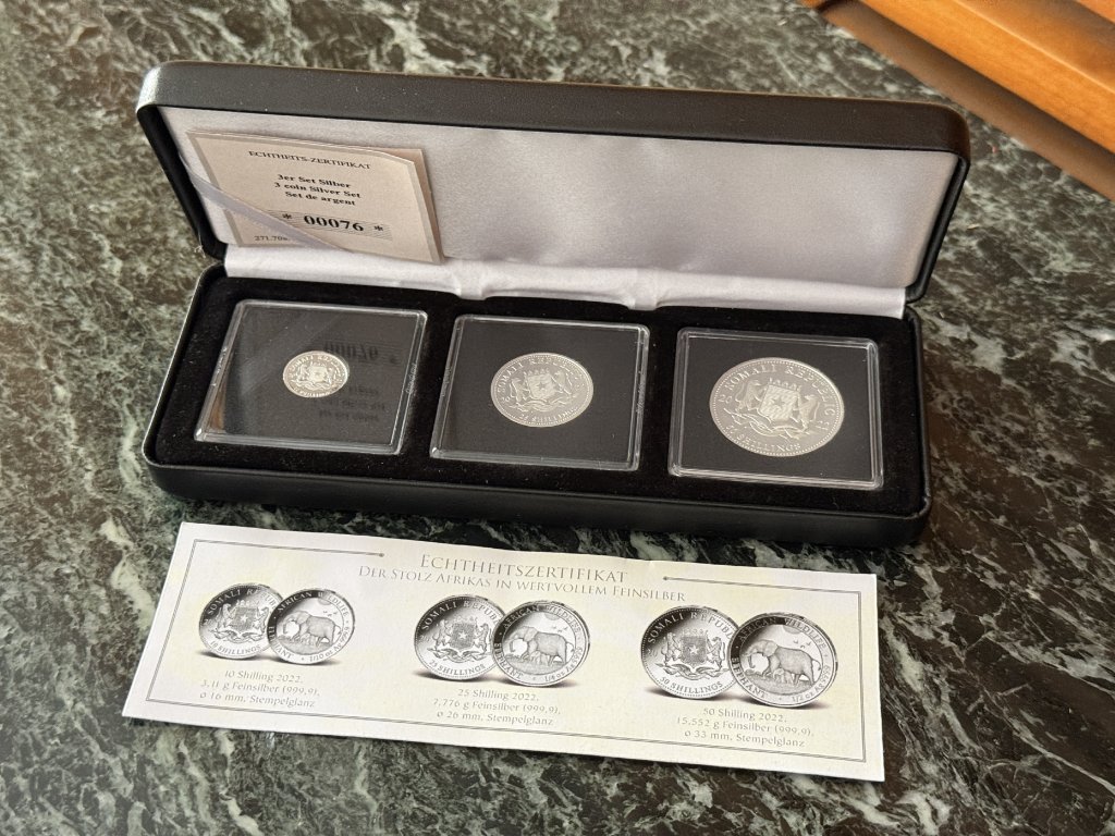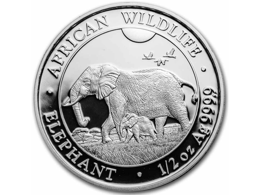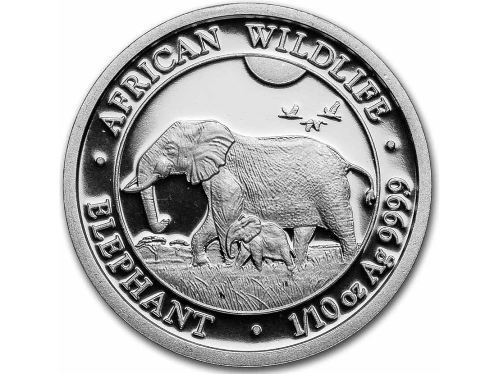 Sada 3 stříbrných mincí: Somálský slon. 1/2 oz, 1/4 oz a 1/10 oz.