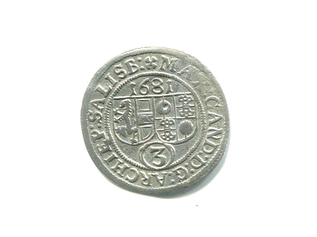 SALZBURG. 1668 - 1687. Maxmilian Gandalf v. Kuenburg. 3 Kreuzer 1681. Ag.