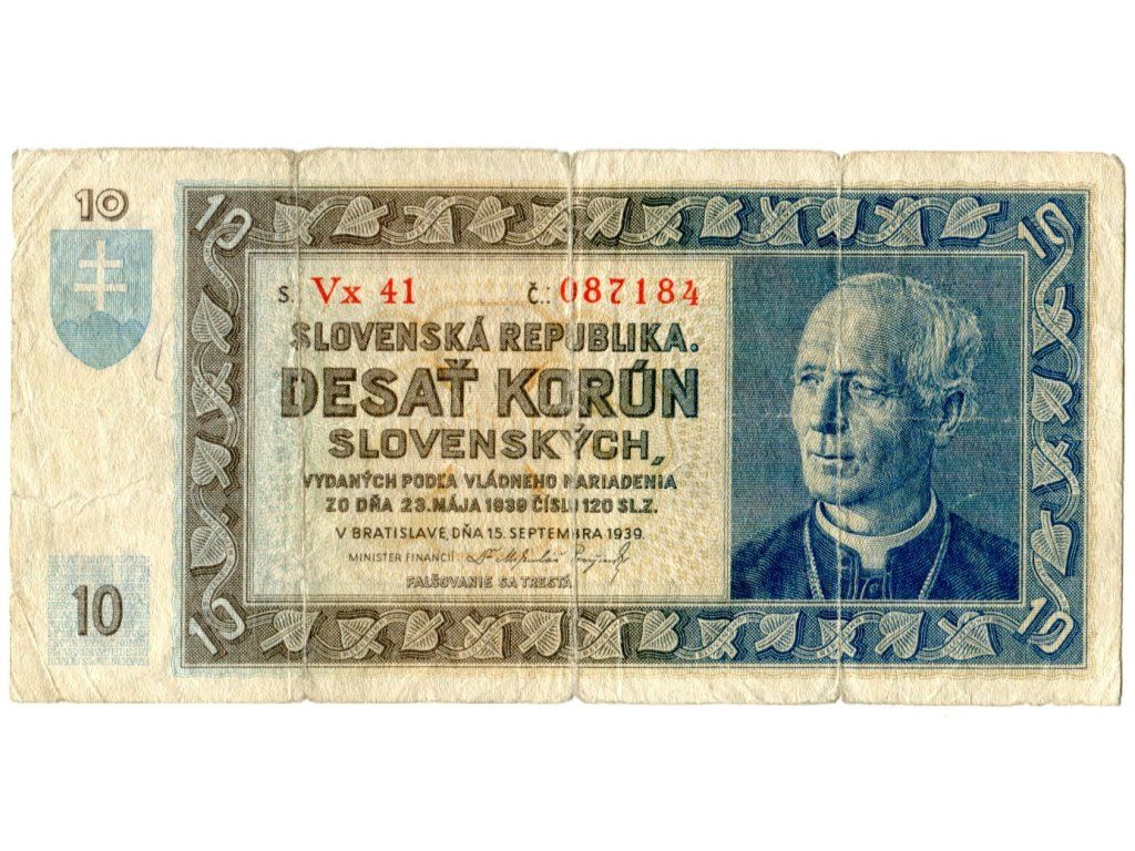 SLOVENSKO. 10 korún 1939. Série Vx 41. Hej. 46.