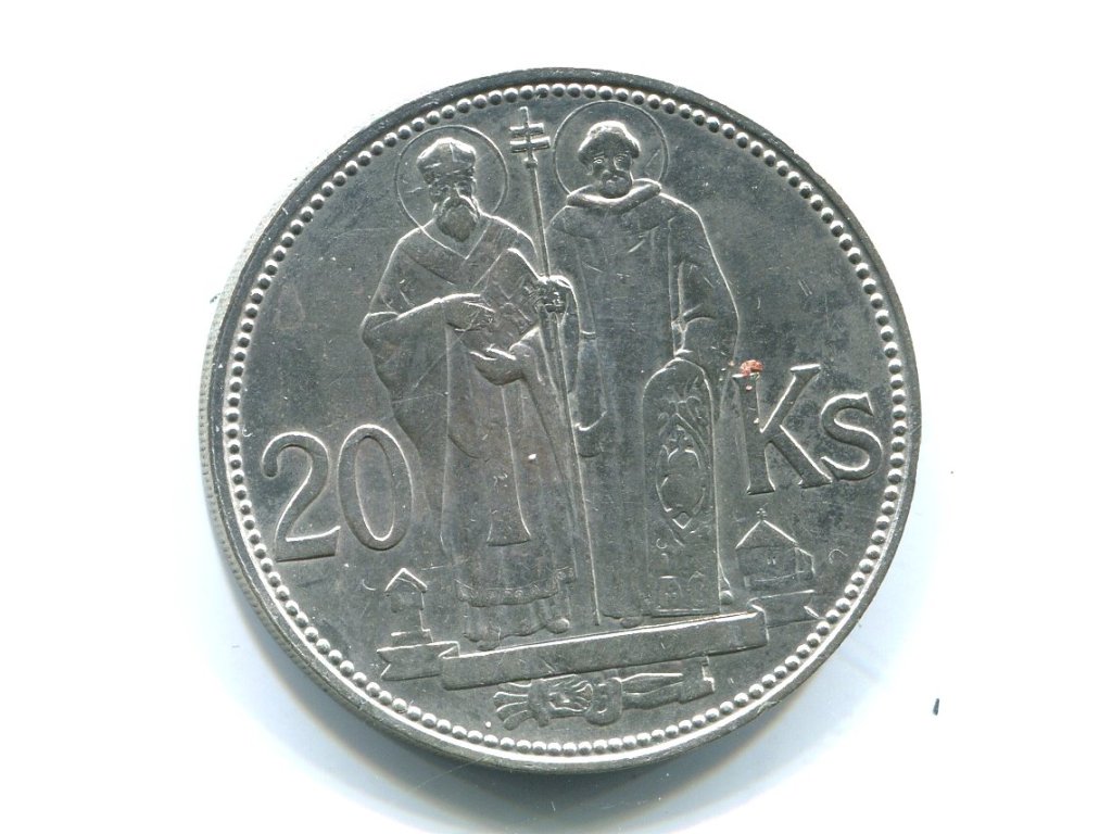 SLOVENSKO. 20 korún 1941. Cyril a Metoděj. Dvojitý křížek. Ag.