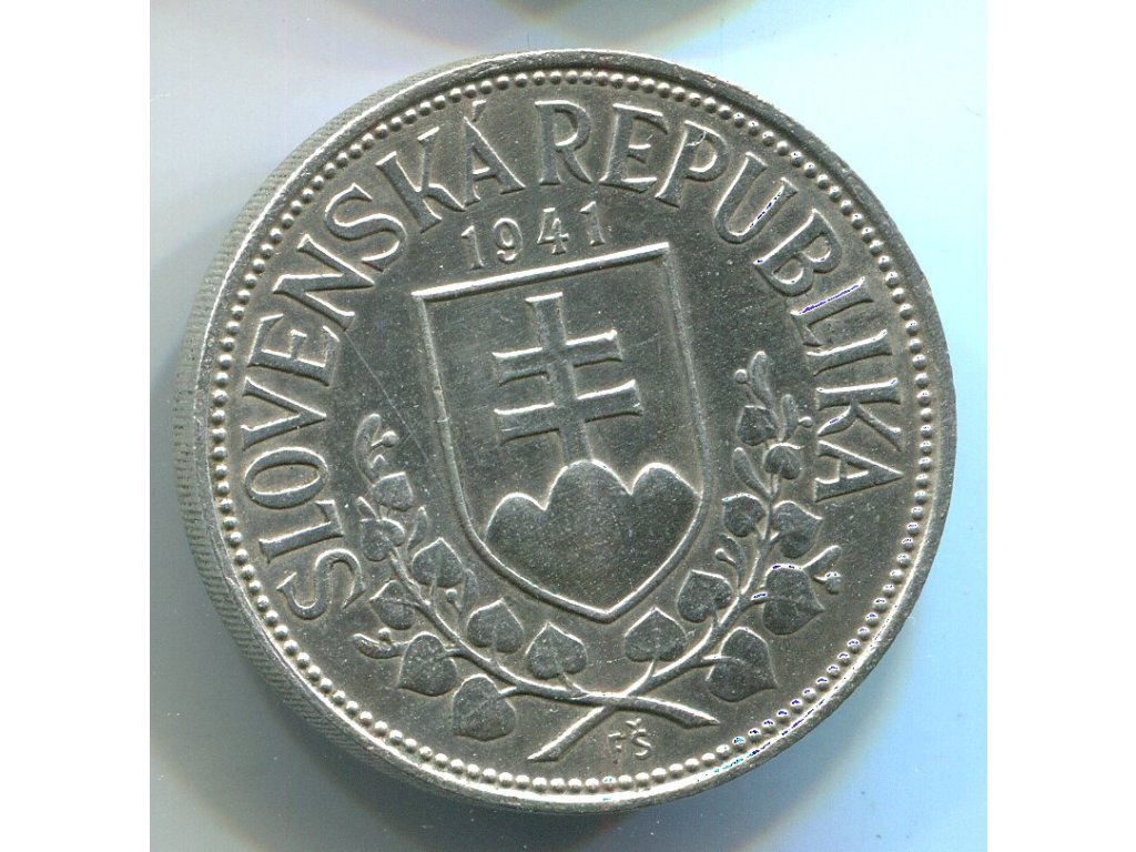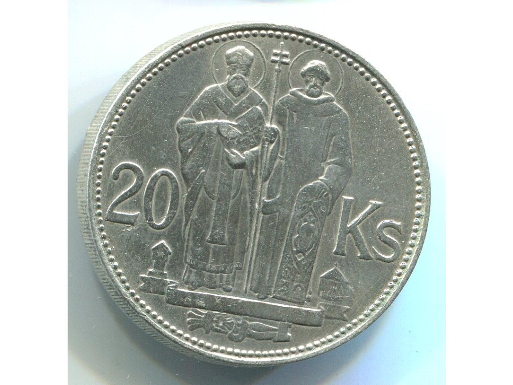 SLOVENSKO. 20 korún 1941. Cyril a Metoděj. Dvojitý křížek. Ag.