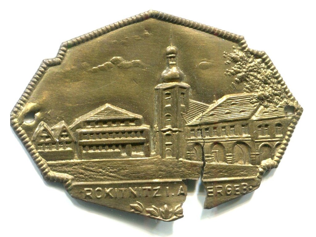 ROKYTNICE n. Orlicí / ROKITNICZ i. Adlergebirge. Štítek na hůl.