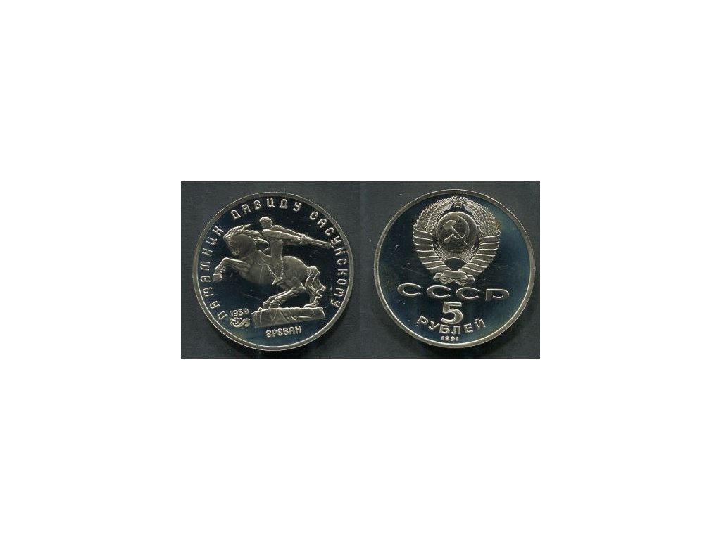 SSSR. 5 rublů 1991. Jerevan. Pomník Davida Sasunského. PROOF.