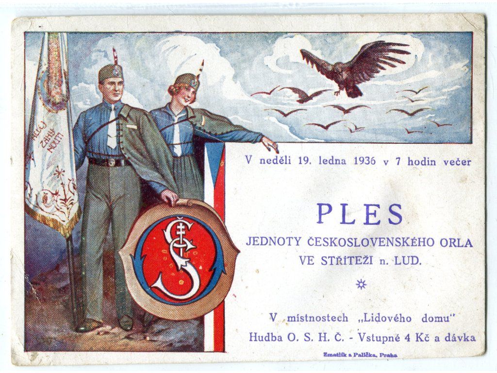 STŘÍTEŽ nad Ludinou. Jednota čs. Orla. Pozvánka na ples. 1936.