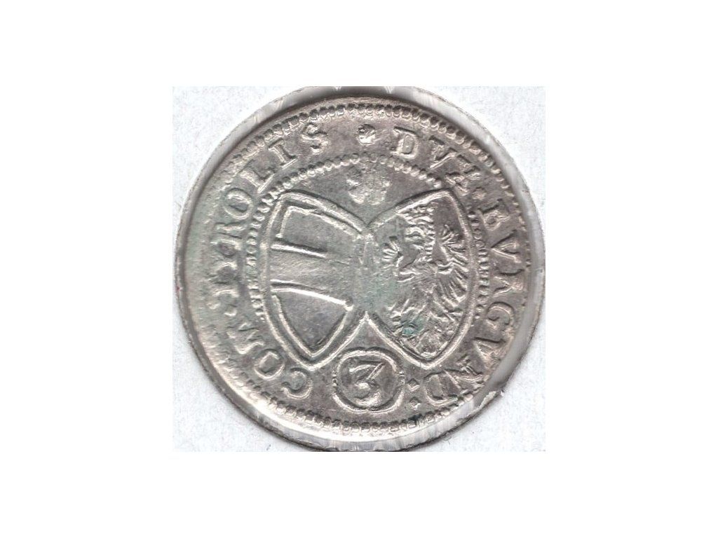 TYROLY. Arcivévoda Ferdinand Karel (1632 - 1662). 3 Kreuzer 1640. Hall. Ag.