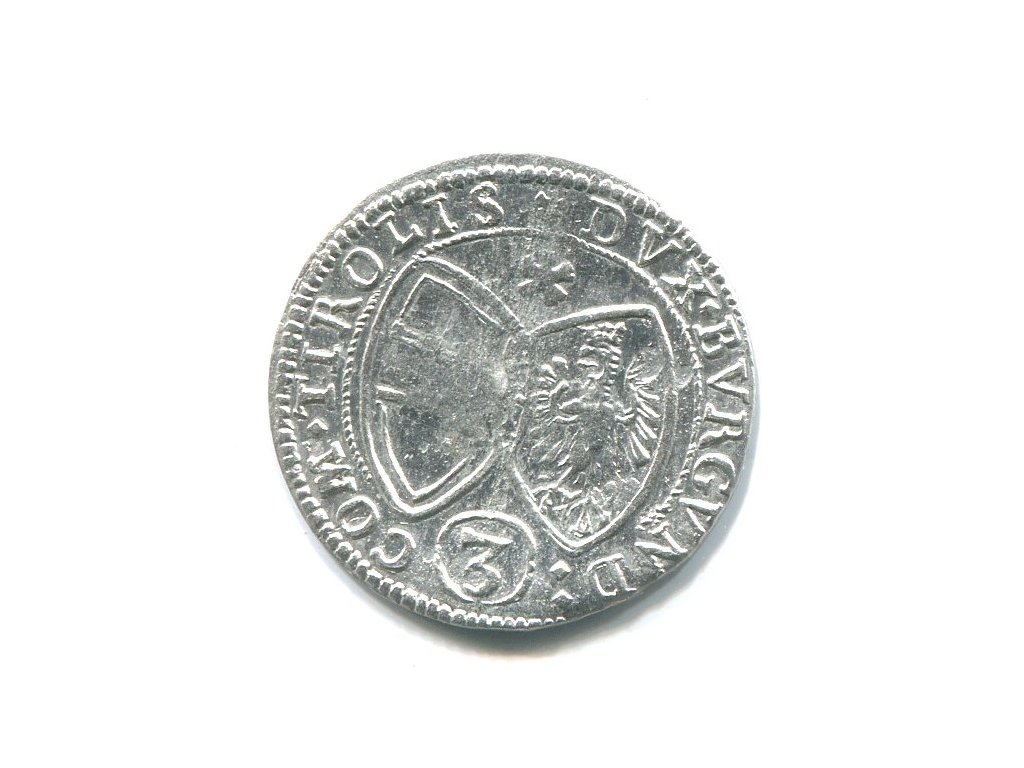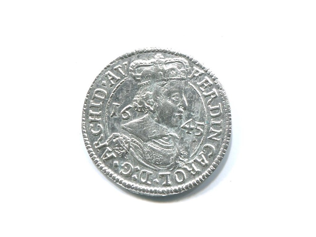 TYROLY. Arcivévoda Ferdinand Karel (1632 - 1662). 3 Kreuzer 1645. Hall. Ag.